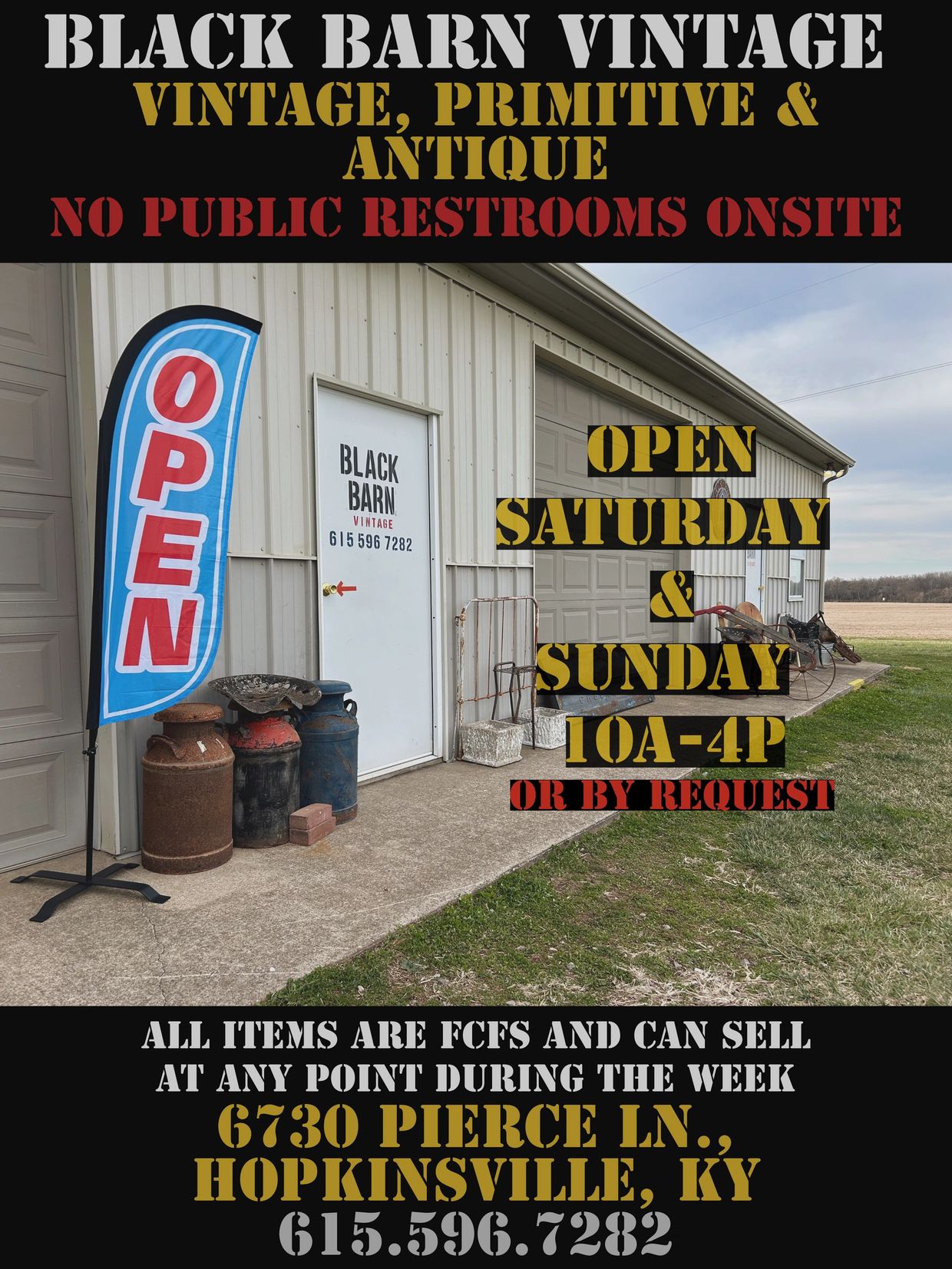 615.596.7282 blackbarnvintage@yahoo.com OPEN Saturday & Sunday 10a-4p Any other time by advanced request